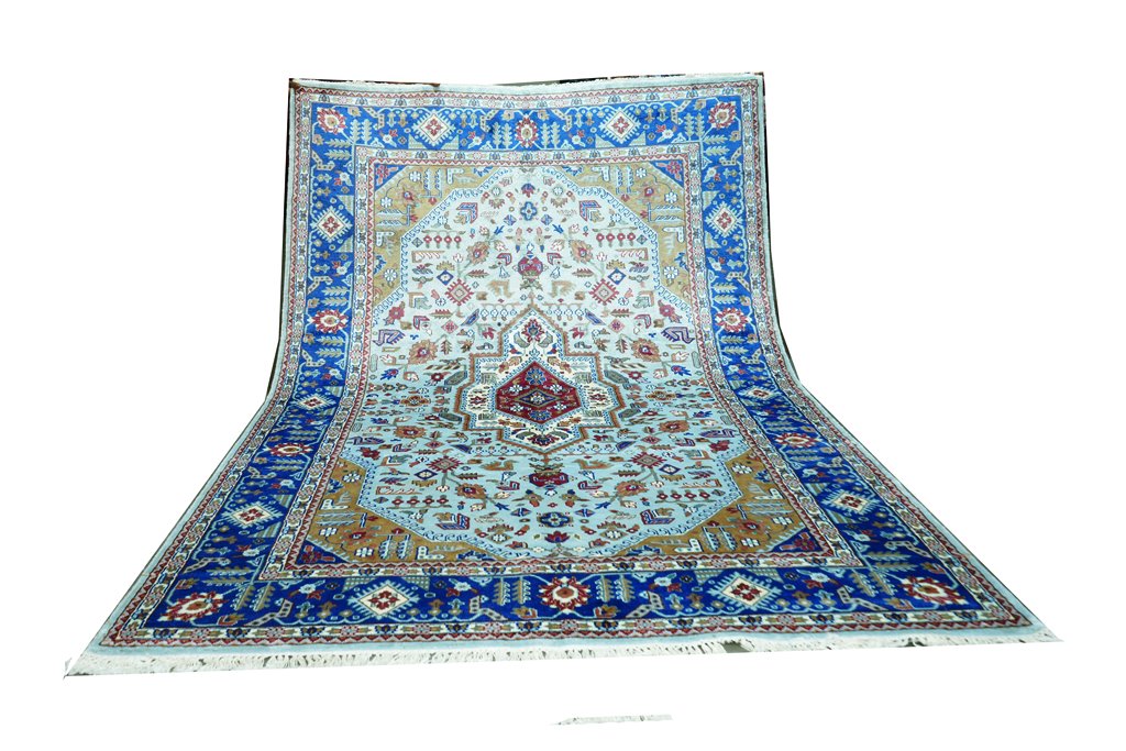 Every Navratan Carpets creation tells a story of heritage and craftsmanship that spans generations. Our rugs are meticulously handcrafted by skilled artisans in Gwalior Madhya Pradesh, India, using techniques passed down through families for centuries. We work directly with artisan communities, ensuring fair wages and preserving traditional craftsmanship. Each rug takes 3-6 months to complete, with master weavers tying thousands of individual knots by hand.